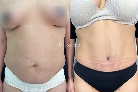 - Заметные послеоперационные рубцы в области живота